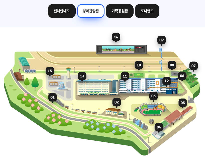 - 운영 시간: 금~일요일 09:30 ~ 17:00 (야간 경마 시 변동)