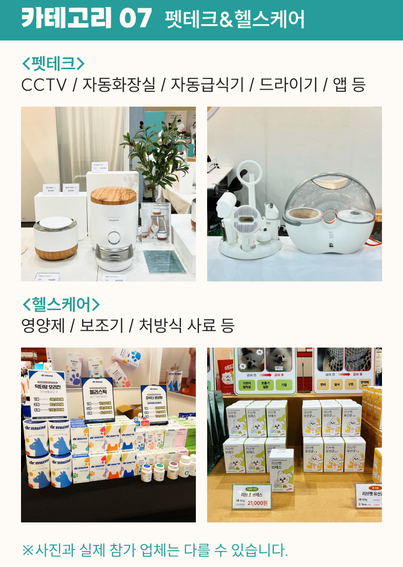 이번 행사에서는 사료, 간식, 외출/놀이용품, 의류, 위생용품, 미용용품, 리빙용품, 펫테크, 헬스케어 등 반려동물을 위한 다양한 제품들을 만나볼 수 있습니다. 평소 궁금했던 제품들을 직접 보고 구매할 좋은 기회입니다.