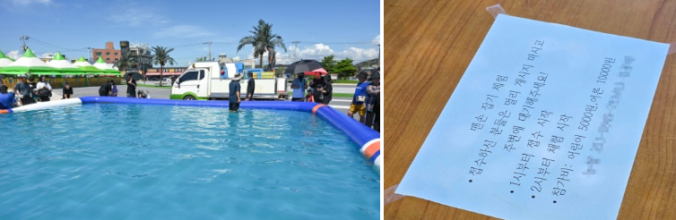 축제장에는 무대 공연(8/22~24, 10/6~7), 물놀이가 가능한 분수대, 그리고 아이들이 뛰어놀 수 있는 방방 시설이 마련되어 있습니다. 축제 초반에는 날씨가 더울 수 있으니 방문 시 그늘막이 있는 장소를 잘 활용하는 것이 좋습니다.
